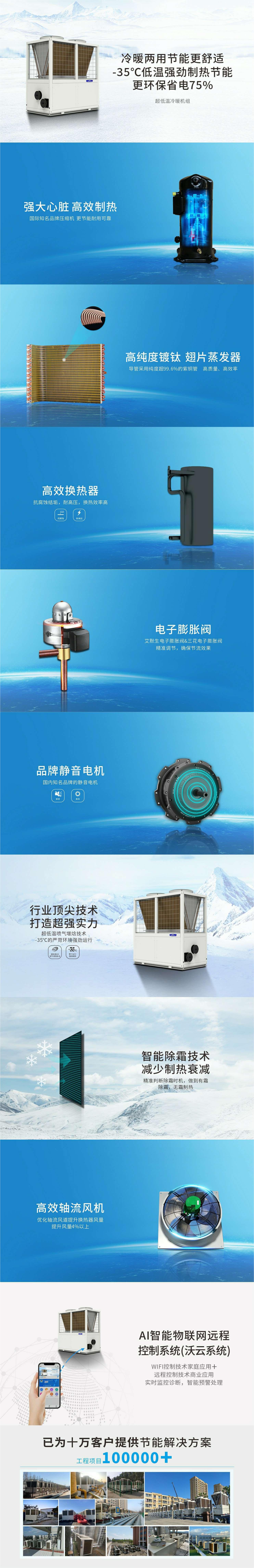 -30℃出99℃热水,可对接暖气片等末端;温度控制精准,运行噪音更低;超凝结;