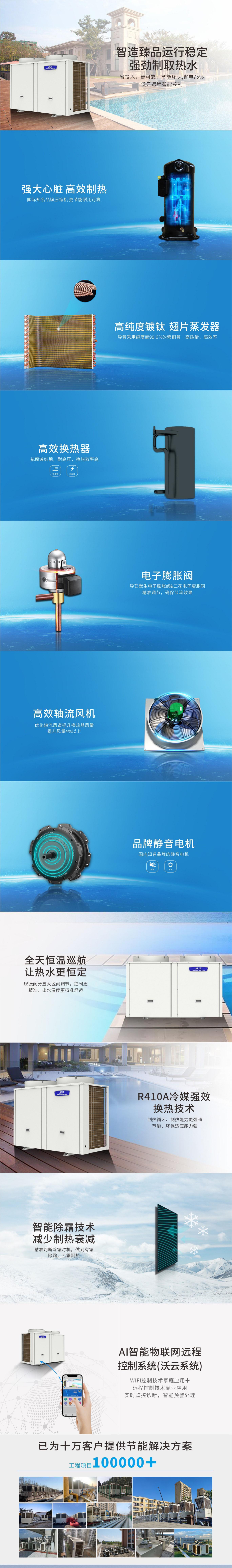 九州酷游全直流变频+喷气增焓+旋转是双转子技术,超低环温采暖能效比cop值2.45,环境温度-30℃,最高出水温度55℃,业内领先;大热量供给,高能制热、冷,持续稳定;全直流变频压缩机采用特殊设计稀土直流变频电机,四季高效,低振动,低噪音,高效节能,高可靠性,采用环保性工质冷媒R410a。