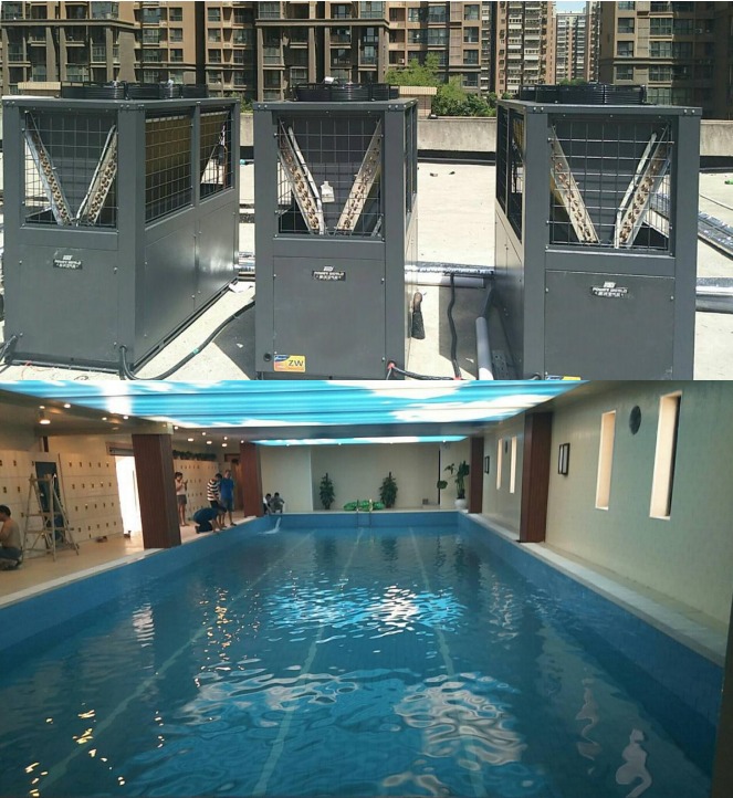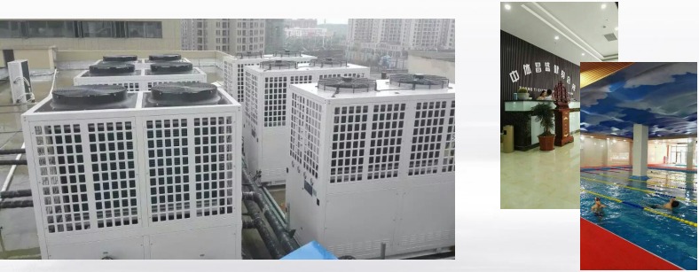 泳池+热水+采暖+制冷:安徽芜湖中体昌盛健身会所选用九州酷游空气能多台24P两联供机组+多台24P热水机组,一举解决2000平米采暖制冷、 500立方泳池恒温加热和每天20吨以上洗浴热水的需求。九州酷游空气能为各行业应用提供一站式的专业解决方案!