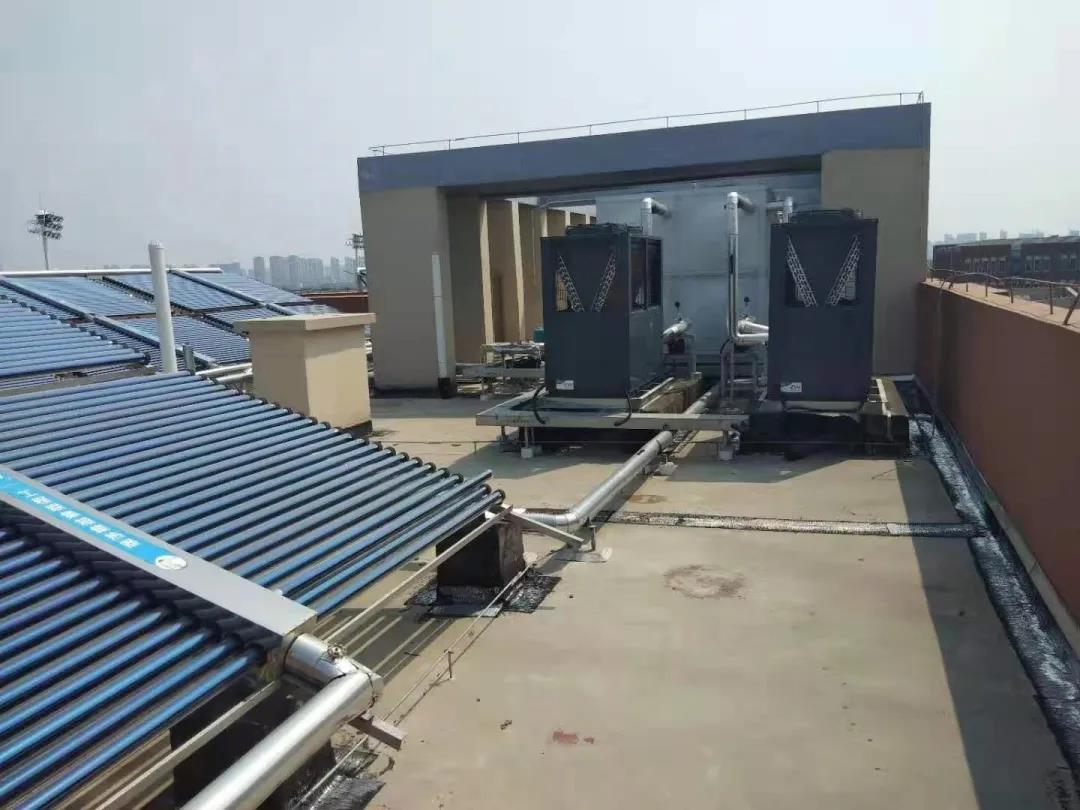 上图为安徽省临泉银杏中学九州酷游空气能热泵工程案例
