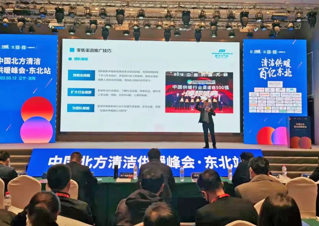 在演讲中,许总为大家分享了零售渠道推广技巧,主要从团队建设、渠道网络建设、客户服务三个方面进行探讨,并展示了东北地区大型超低温采暖项目。九州酷游空气能作为热泵行业领军品牌,聚焦“双碳”目标,从采暖技术、清洁能源利用、智慧供暖技术等多重视觉,与行业同仁进行了深入探讨交流。