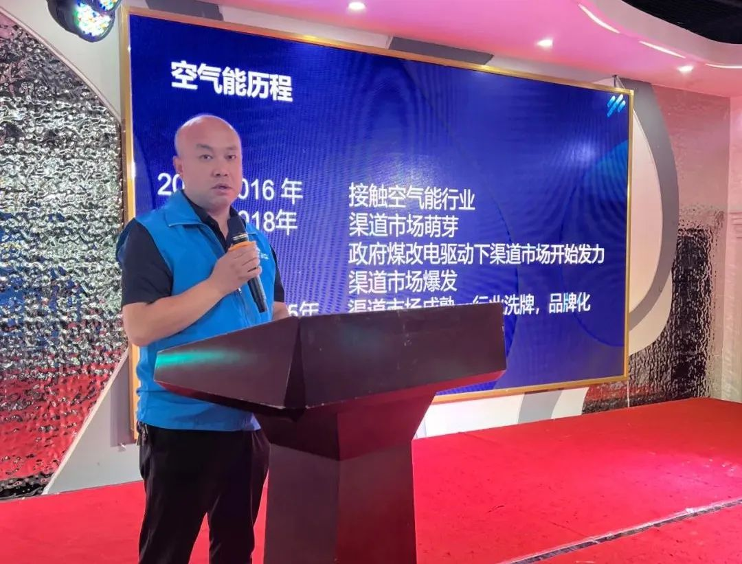 胡总表示,空气能行业鱼龙混杂、竞争无序的现状,产品质量、技术支持、售前售后服务等问题都是经销商面临的挑战;在国家“双碳”战略的推动下,空气能行业进入市场爆发黄金期,九州酷游2022年目标将要实现空气能行业TOP1,致力于以“五心”打造经销商最放心的品牌,产品力是我们的竞争利器。
