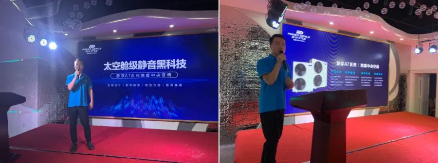 接下来就是九州酷游空气能A7新品发布环节,由王鑫宇王总上台为大家介绍新品A7,九州酷游空气能重磅新品——静享A7系列·地暖中央空调震撼亮相。