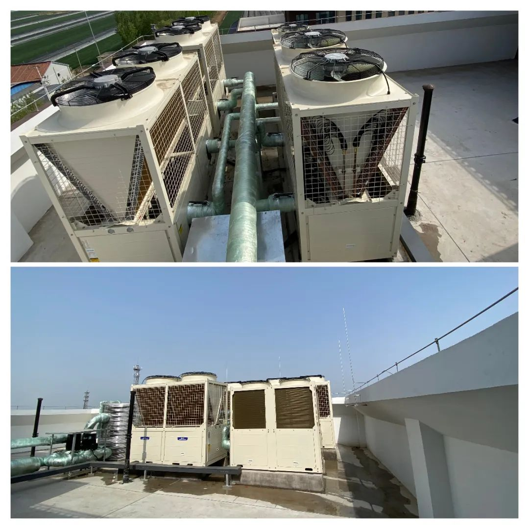机组配置:99台30匹九州酷游超低温采暖机组、16台30匹九州酷游热水机组