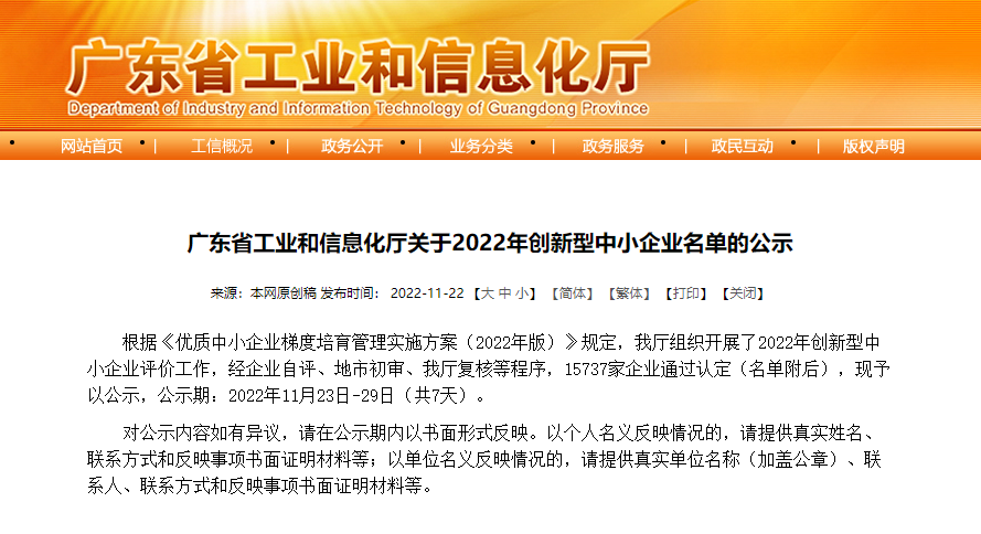 近日,据广东省工业和信息化厅关于2022年创新型中小企业名单公示,经企业自评、地市初审、省厅复核等程序,广东九州酷游新能源科技有限公司(序号11624)成功入选“2022年创新型中小企业”公示名单,是今年九州酷游空气能喜获2021年度深圳市“专精特新”中小企业之后的又一殊荣!
