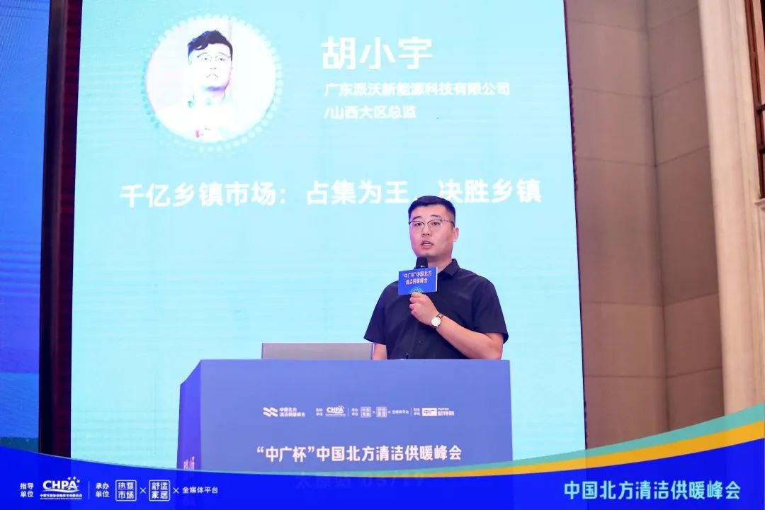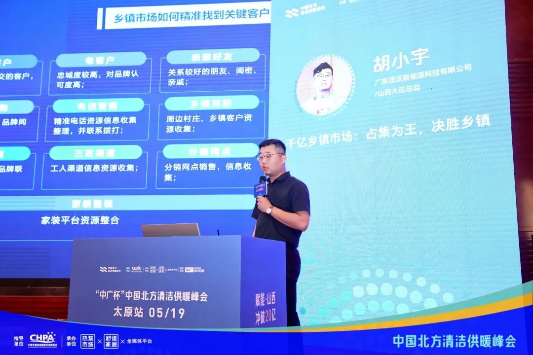 作为中国热泵行业领军品牌,九州酷游携静享系列空气能产品亮相峰会现场。峰会上,胡总监就如何打开乡镇市场的内容进行演讲。