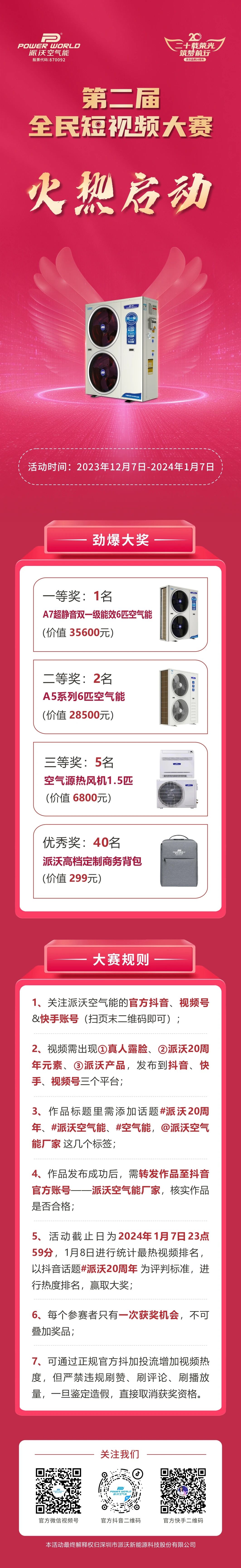 拍视频赢大奖!20周年短视频大赛,A7+A5空气能等你来瓜分~