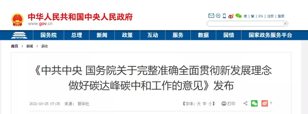 重磅│国务院正式发布双碳纲领性文件