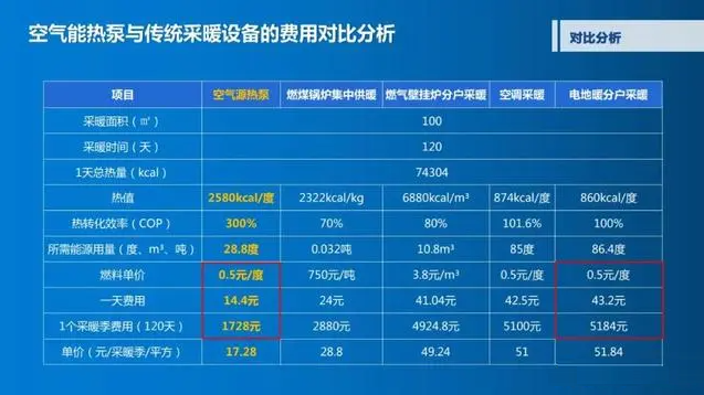 关于电费问题,以北方普通家庭为例,采暖面积为100㎡,一年采暖季为120天,使用电地暖1天需花费约43元,按照0.5元一度电来算,4个月供暖期总费用约5100元,而空气能1天费用约14元,4个月供暖期总费用约1700元。因此,显然使用空气能更节能更省钱。