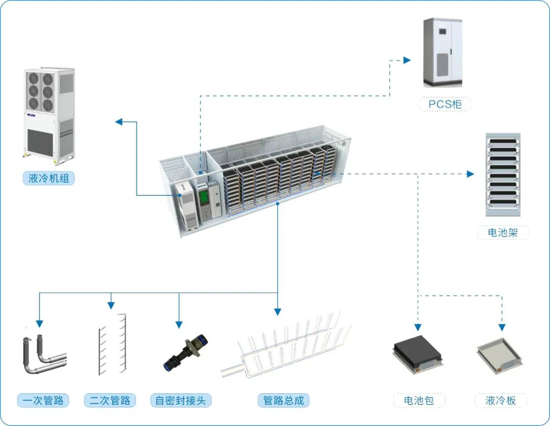 在电芯层级,九州酷游储能液冷系统通过EMS智能监控,对每一个电芯进行精准管理;在系统层级,液冷管路可根据集装箱及电池模块布置进行定制管路设计、采用多种走管方式、使整个系统的流量、流阻与电池冷板及液冷机组完美匹配;自带密封接头,降低漏液可能性。液冷系统除温控外还具备防水、防腐,防尘,防震等功能。