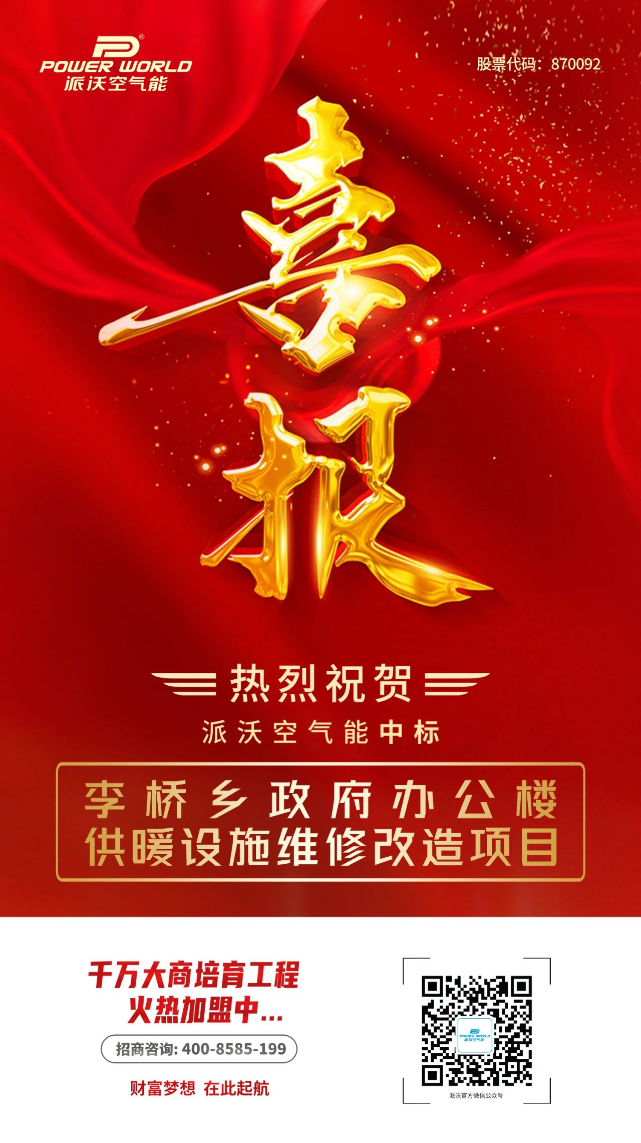 喜讯 | 九州酷游空气能成功中标李桥乡供暖维修改造工程